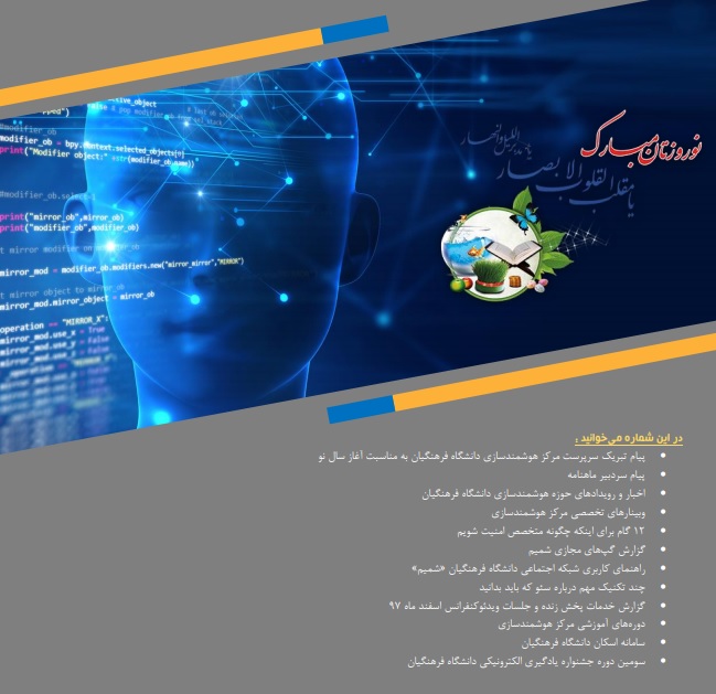 ششمین شماره «ماهنامه تخصصی مرکز هوشمندسازی دانشگاه فرهنگیان» منتشر شد. 2