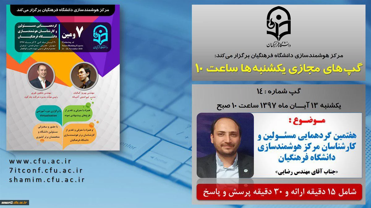امتیاز دهید : برگزاری سلسله جلسات گپ های تخصصی مجازی شماره 14 مرکز هوشمندسازی دانشگاه فرهنگیان 2 شنبه 29 تیر 1398 ساعت 13:30