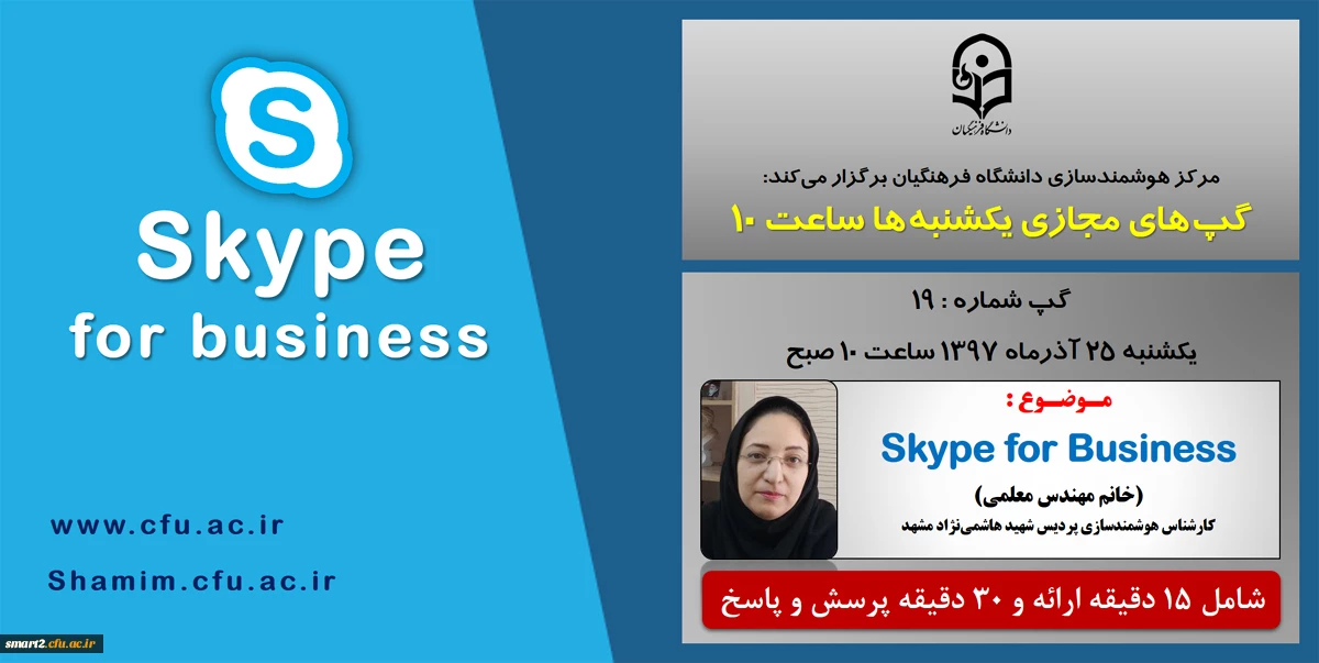 امتیاز دهید : برگزاری سلسله جلسات گپ های تخصصی مجازی شماره 19 مرکز هوشمندسازی دانشگاه فرهنگیان 2 شنبه 29 تیر 1398 ساعت 13:45